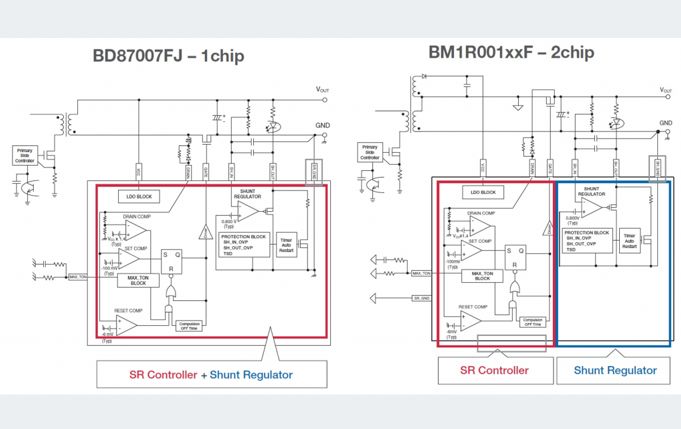 ROHM的SR控制器旨在提供易于集成的同步整流解决方案。该SR控制器能够支持本文介绍的许多功能,并且只需要很少的外部组件。因此,ROHM的SR控制器在CCM和DCM模式下都能实现高性能的同步整流解决方案。SR-IC的其他可选型号还内置有并联稳压器,不仅具有灵活的接地参考,待机功耗也非常低。