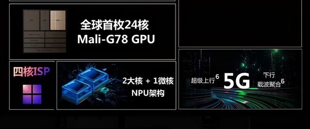 同时集成24核心的Mali-G78 GPU是世界第一次,架构超过麒麟990 Mali-G76,核心数也多了一半,性能提升60%。