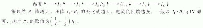 由于EC电源相对不变,若IERE 增加,必然引起UBE下降,从而造成IB的下降。电路稳定静态工作点的过程可以写成以下形式: