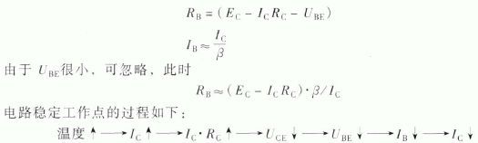 上式说明基极电压UB只受EC·RB1和RB2 的影响,只要这三个参数确定,则UB 就可保持稳定。