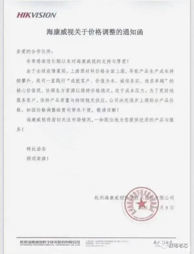 日前一张来自中国安防市场巨头海康威视的价格调整通知函引发市场广泛关注: