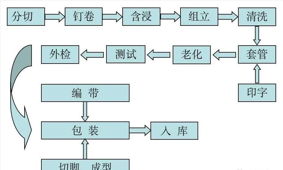 铝电解基本由正极箔+氧化膜(不能独立于正极箔存在)+电解纸(浸有电解液)+负极箔+外壳+胶塞+引线+套管