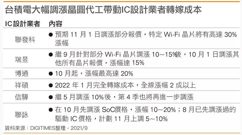 Molex、安森美、联发科、瑞昱、博通、祥硕、长电、友顺等皆表示价格调涨。