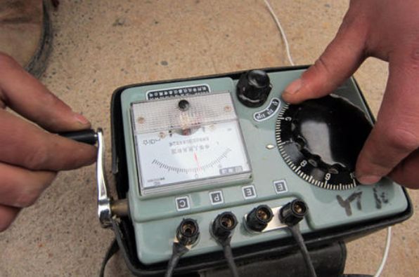 3、辅助接地极电阻过大。解决的方法是,在地桩处泼水或使用降阻剂降低电流极的接地电阻。