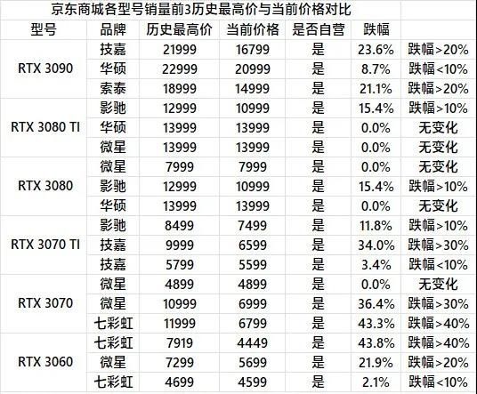 通过某平台历史价格平台对这些产品进行统计,统计显示目前多数显卡都出现降价,其中少部分显卡价格跌幅高达40%。与显卡一样被抛售的还有奇亚币矿工的固态硬盘。