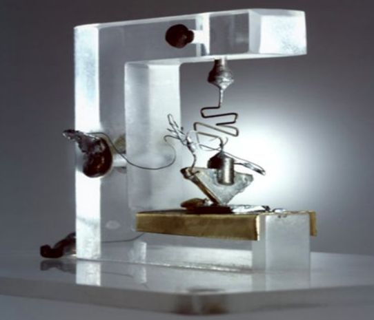 1947 年 12 月 23 日,那是圣诞节的前一天,威廉肖克力把车开到离纽约市 20 公里的贝尔实验室。那时天空阴暗,才早上 7 点,他匆忙走过空空荡荡的走廊,到达二楼办公室。在那里,他心情激动的等待着他的同事们。因为当天下午他们要向贝尔实验室的领导演示他们的新发明——不用电子管的放大器。