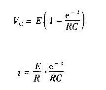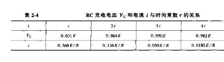 根据公式计算在不同时间内的Vc和i,其结果见表2-4。从表中可以看出,r越大充电越慢。当t=3r时,Vc=0.95E;当t=5r时,Vc=0.993E;一般认为当 t=(3-5)r时,电容器上的电荷已被充满。