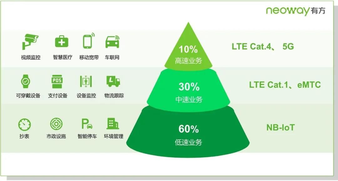 在蜂窝物联网联接分布中,约30%的中速率物联网业务需要Cat.1或eMTC网络提供服务。在2016年3GPP冻结
