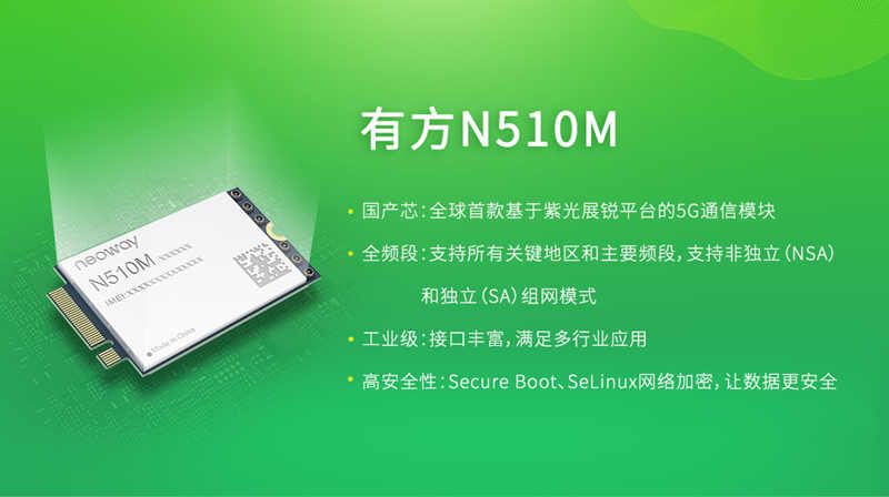 有方N510M是业界首款基于紫光展锐平台的“国产芯”5G通信模块。