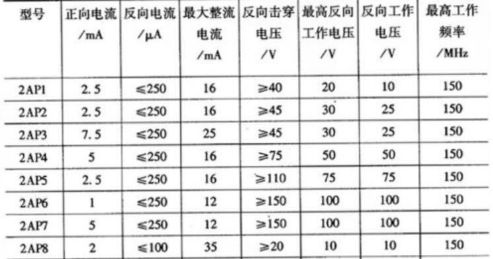 下表所示2AP1-2AP1O二极管主要参数: