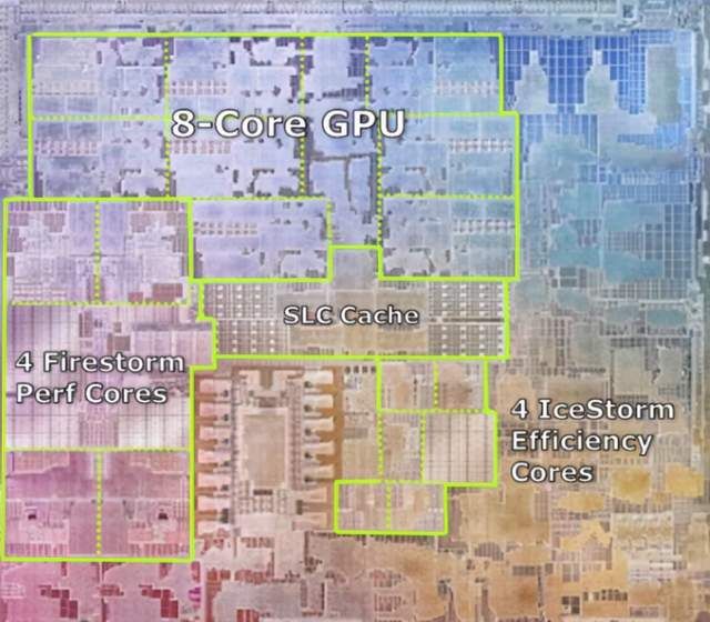 除此之外,苹果 M1在SOC中还将CPU、GPU、缓存和众多芯片集成在一起,并做到了将大部分的电脑接口和总线集合在一起。这一点传统电脑或者笔记本暂时是无法做到的。