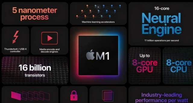 苹果 M1芯片所采用的制作工艺是5nm 制程工艺,有购买了苹果12系列手机的小伙伴,一定都为同样采用5nm 制程工艺的A14处理器所折服了吧?相信同样采用了5nm 制程工艺的苹果 M1芯片的性能也是非常优异的。