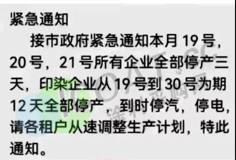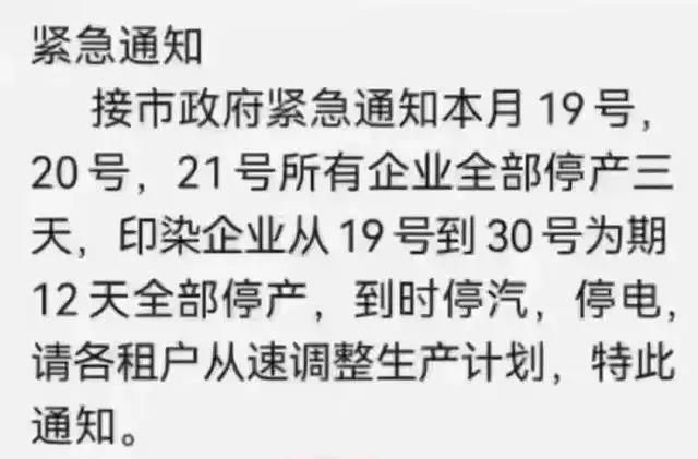 江苏:印染集聚区发布停产通知,超1000家企业“开二停二”