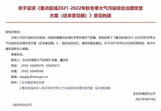 9月14日,生态环境部又发布《重点区域2021-2022年秋冬季大气污染综合治理攻坚方案(征求意见稿)》,同往年相比,今年限产范围有所扩大!看来多行业的秋冬季错峰生产安排已经箭在弦上了!