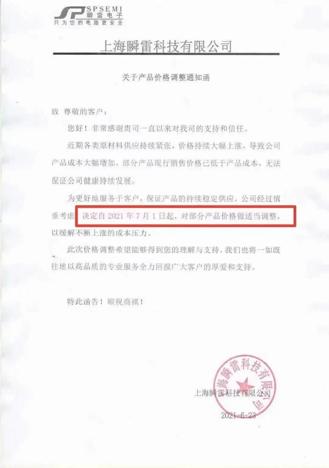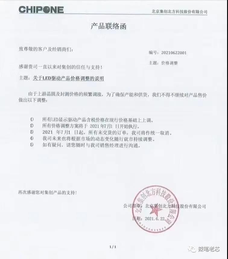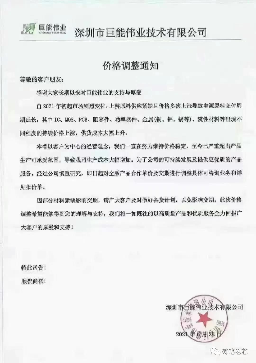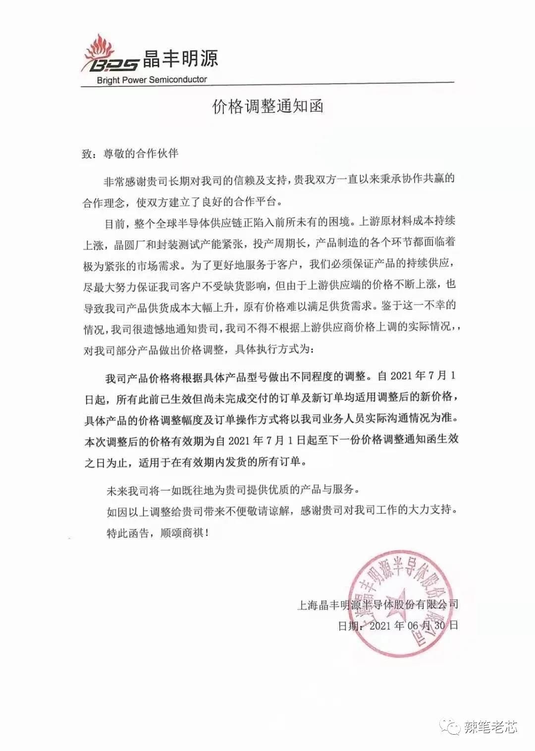 除了晶丰明源,还有多家厂商发函正式通知将在Q3调涨价格今天开始涨价。