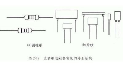 玻璃釉电阻器除了普通型的以外,还有精密型的玻璃釉电阻器。在外形结构上常见的有圆柱形及片状两种形式,如图2-19 所示。