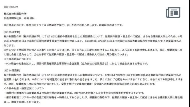 此外,全球MLCC龙头村田位于日本福井县越前市的工厂,同样受员工染疫而停工至8月31日。由于福井厂是村田在日本生产被动元件MLCC主要基地之一,同步影响MLCC供应。华新科认为,日本MLCC供应目前并未改变,若停工持续一段较长时间,才有可能造成供需失衡。