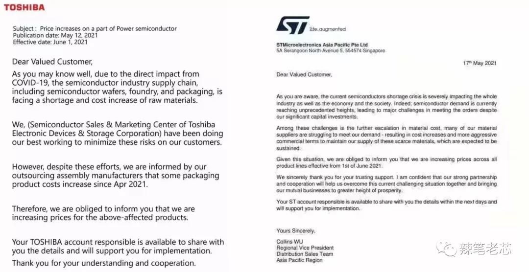 ST、东芝、安森美、Maxim等,涨价函一封接一封