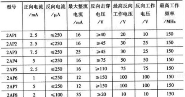 下表所示2AP1-2AP1O二极管主要参数: