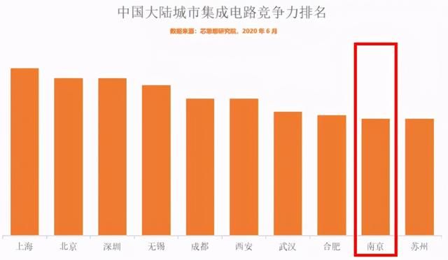 芯思想研究院今年6月发布的2020年中国大陆城市集成电路竞争力排行榜显示,长三角有上海、无锡、合肥、南京、苏州5个城市上榜。前十强中,南京排在长三角第4位、全国第9位。