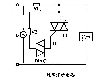双向触发二极管除用来触发双向晶闸管外,还常用在过压保护、定时、移相等电路,图2就是由双向触发二极管和双向晶闸管组成的过压保护电路。当瞬态电压超过DIAC和Ubo时,DIAC迅速导通并触发双向晶闸管也导通,使后面的负载免受过压损害。