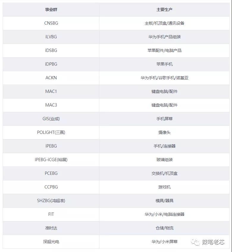 鸿海旗下富士康制造苹果产品基地遍及中国、印度、美国、越南和巴西等地。据富士康官网显示,富士康科技集团龙华园区事业群主要包括以下业务:
