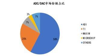 目前来看市场份额分别被ADI、TI、MAXIM、MICROCHIP等国外企业独占,其中,ADI市占率约为58%,TI占比约为25%,MAXIM占7%,MICROCHIP占3%,难觅国内企业身影。